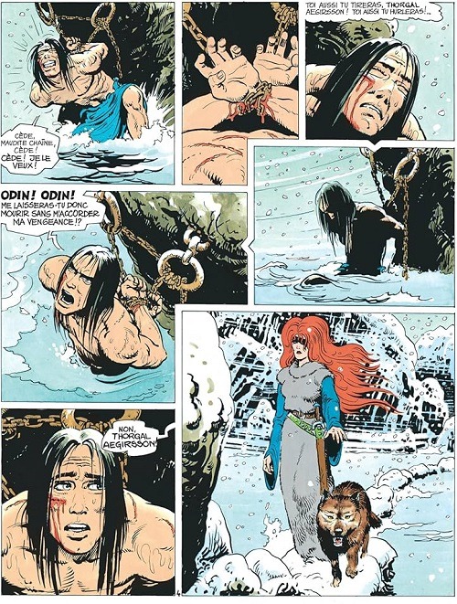 Mélange de mythes médiévaux, d’Heroic-fantasy et de science-fiction, la mythologie selon THORGAL nait d’une savante alchimie entre ces trois constituants romanesques, le tout mâtiné d’une touche de réminiscences religieuses. Si, au départ, l’influence de J.R.R. Tolkien se fait ressentir (le roi des vikings s’appelle Gandalf et Thorgal ressemble comme deux gouttes d’eau à Aragorn du SEIGNEUR DES ANNEAUX), la série s’émancipe et trouve rapidement ses marques. À l’arrivée, cet équilibre entre l’histoire bien réelle, les mythes scandinaves, la métaphore biblique, la science-fiction et la fantasy, finit par conférer à l’ensemble une étonnante proximité pour le lecteur, qui avance au gré de ces aventures comme si tous ces éléments coulaient de source.