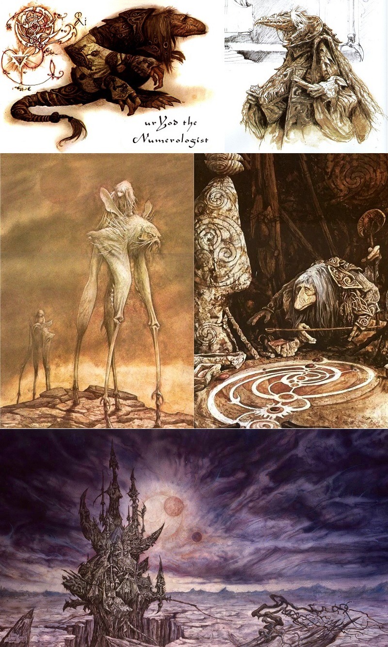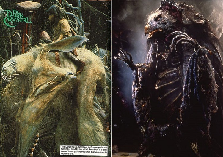 De son côté, Brian Froud avait pris soin d’imaginer des êtres fantastiques et s’amusait à combiner les différents animaux et autres créatures mythologiques, les Skeksès apparaissant par exemple comme un parfait mélange de rapace, de reptile et de dragon !
