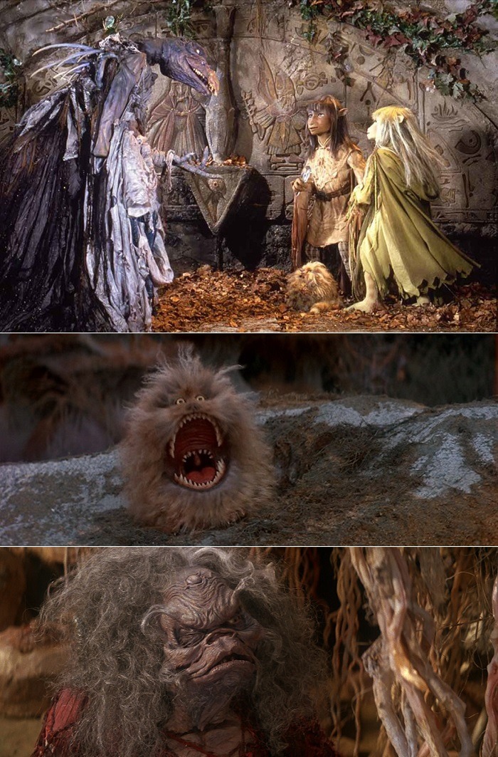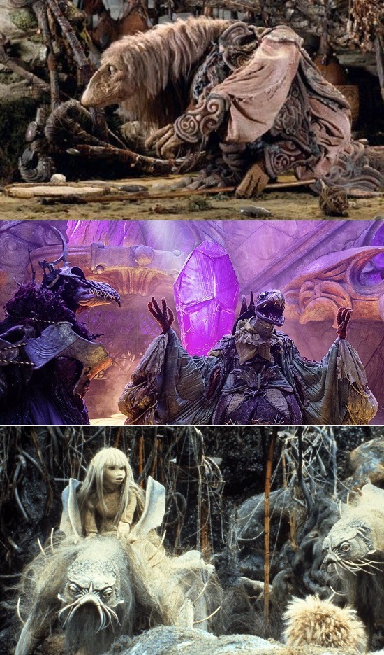 Entièrement conçu à partir de marionnettes et de décors artificiels, le spectacle imaginé au départ par Jim Henson offre une imagerie qui peut réellement prétendre à du jamais vu, illustrant parfaitement le principe de la “fantasy”, où le monde dans lequel se déroule le récit n’est pas comme le notre. Ainsi, quasiment aucun être vivant, qu’il soit animal ou végétal, ne trouve un référent dans notre réalité connue. Mis à part les Gelfling qui ressemblent à des elfes, toutes les créatures du film sont uniques en leur genre. Infiniment complexes et élaborées, animées par toute une batterie de câbles et une armée d’animateurs, les marionnettes du film sont restées les plus sophistiquées jamais conçues à ce jour.
