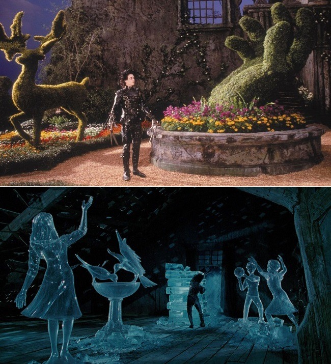 D’un simple point de vue scénaristique, il y aurait beaucoup à dire sur la profondeur thématique et philosophique du film : Le fait qu’Edward exerce son art (de sculpteur) en premier lieu sur des végétaux, puis sur des animaux et enfin sur des humains, avant d’être banni de la communauté et de ne plus sculpter que des minéraux et plus exactement de la glace, en dit long sur le parcours initiatique de cet éternel adolescent à la recherche de sa propre identité…