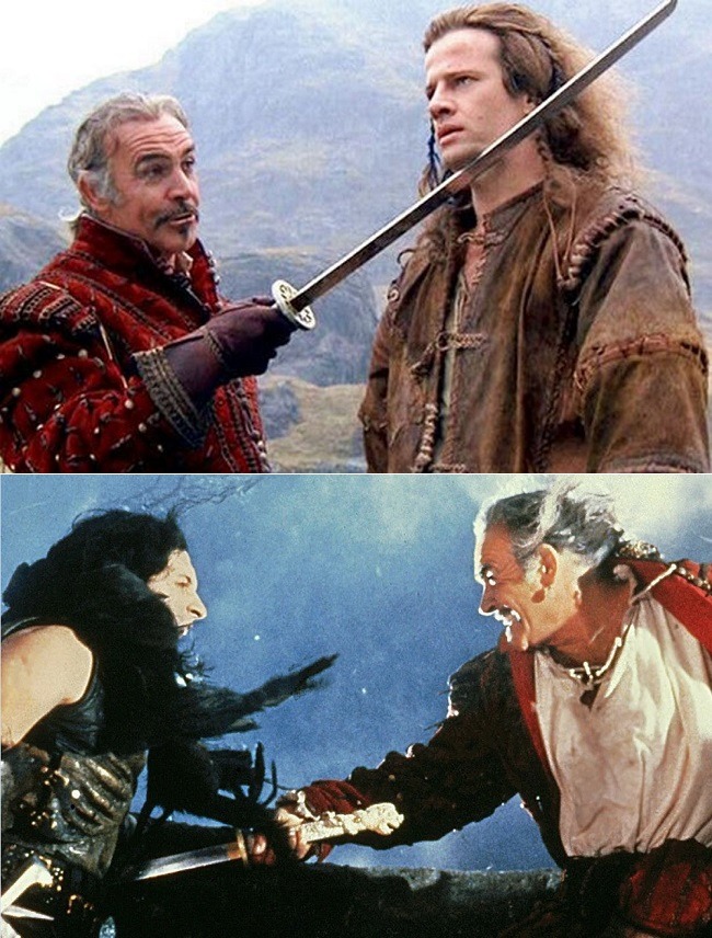 Le pitch est d’amblée assez croquignol : Conrad MacLeod (Christophe Lambert) nait en Écosse au 16° siècle. Il est immortel. Blessé à mort durant la bataille entre son clan et celui des Frazer au cœur des Highlands, il finit donc par se relever frais et dispo, comme si de rien n’était. Ses proches, médusés, craignent qu’il s’agisse d’une manifestation diabolique et le bannissent séance tenante. Il erre alors à travers le temps et rencontre une belle jeune femme, Eather, qui devient sa femme. Plus tard, un autre immortel (Sean Connery) vient à sa rencontre. Il porte le doux sobriquet de Juan Villalobos Sanchez Ramirez, et affirme être un égyptien (!) âgé de 2400 ans. Il devient rapidement son mentor. Le but de l’égyptien au nom espagnol est de préparer le “jeune” Highlander afin qu’il puisse affronter le terrible Kurgan (Clancy Brown), celui-là même qui l’avait laissé pour mort lors de la bataille des Highlands. Il s’agit d’un autre immortel, maléfique et puissant…