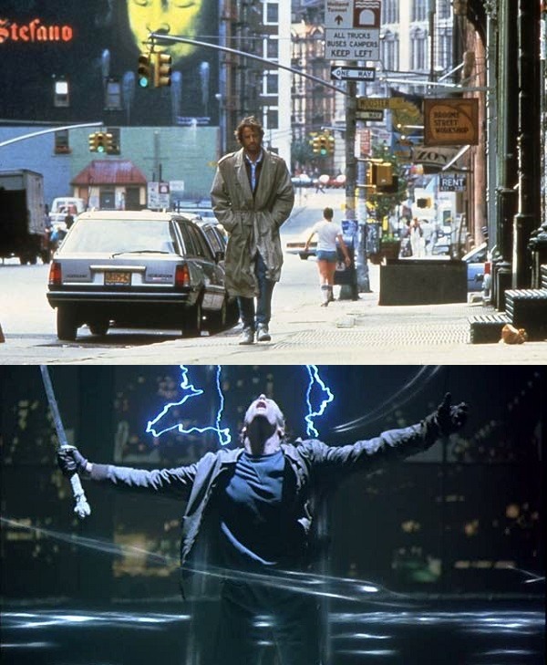 Ils ne perçoivent pas à quel point le film fut un ovni survolant de haut la planète du genre fantastique, à la forme inédite où se mêlaient les trouvailles visuelles du monde du clip , l’héritage viscéral des polars des 70’s et des grandes fresques historiques mâtinées d’heroic fantasy des années 80, comme EXCALIBUR ou CONAN LE BARBARE. Ils ne voient pas que la réussite de la chose ne tient absolument pas au scénario, hautement improbable avec toutes ces séquences semblant avoir été écrites par un mec bourré à qui on aurait filé une machine à écrire et qui aurait improvisé dessus avec moult postillons éthyliques, mais à sa forme ambitieuse, à sa construction complexe et à sa tonalité pleine de contrastes et de trouvailles séminales. Et ils ne s’aperçoivent même pas à quel point le film aura influencé tout un pan du cinéma qui lui aura succédé, offrant à ces héritiers une nouvelle forme de liberté créative, repensant complètement la relation entre la narration, le son et l’image, afin que le spectacle devienne plus prenant encore, en nous transportant dans un autre monde, très adulte, aussi fantastique dans le fond que dans la forme. Car, comme on dit souvent, ce n’est pas l’histoire qui importe, mais la manière de la raconter…