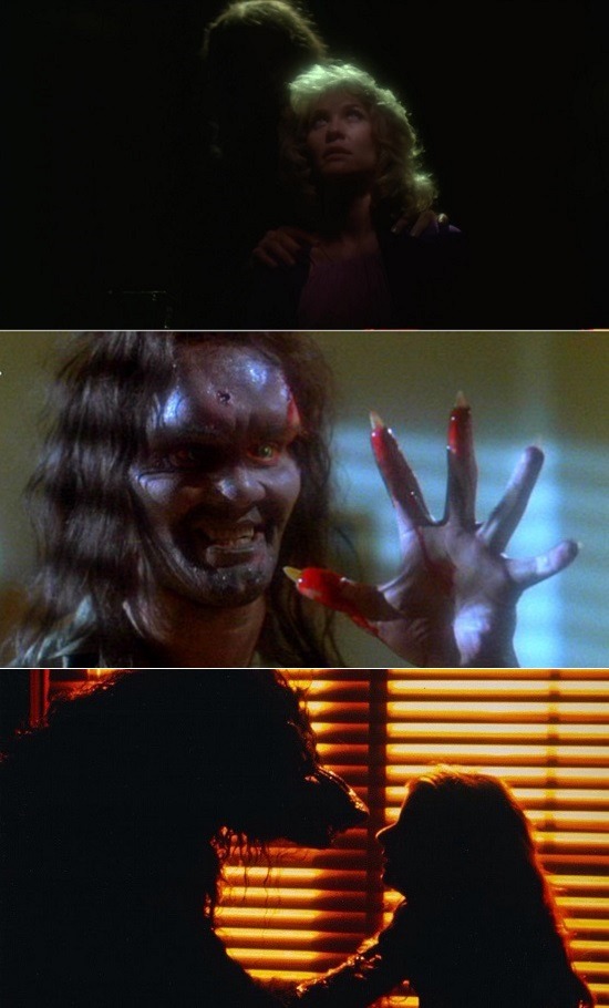 On a ensuite cette scène phénoménale pour l’époque, d’une poésie noire étincelante, dans laquelle deux protagonistes font sauvagement l’amour en pleine forêt, tout en se transformant en loups sous le clair de lune (Rrrrrrh ! essayez donc de résister au magnétisme et à l’attrait sensuel de la trop rare et trop vite disparue Elisabeth Brooks !!!)…