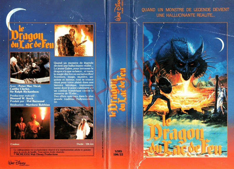LE DRAGON DU LAC DE FEU atterrira donc rapidement dans les rayons des vidéoclubs. Je l’avais dupliqué et j’avais même fait faire une photocopie couleur de la jaquette, que je garde encore aujourd’hui, avec celle des premiers STAR WARS, entre autres…