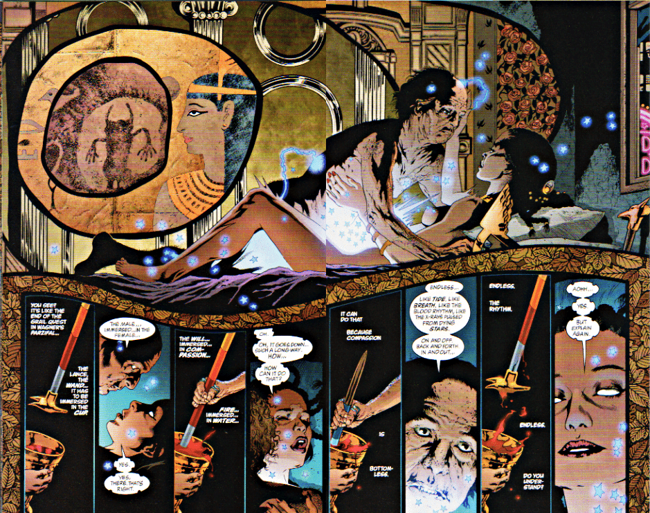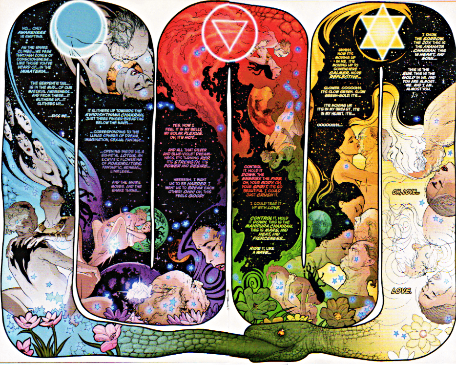– L’épisode #10 : SEX, STARS & SERPENTS, est une longue scène érotique, dans laquelle Alan Moore tente de hisser le coït à un niveau de spiritualité extrême. Une initiation de plus pour son héroïne, qui entame ainsi son chemin vers la maitrise de la magie. Toutes les planches sont construites et illustrées de manière à symboliser les différentes étapes du rapport sexuel.