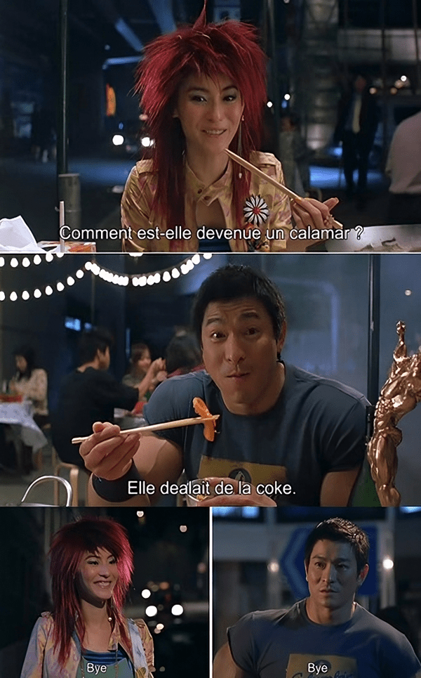 Le film est loin d’être parfait. Il mélange beaucoup de genres, et ne parvient pas vraiment à un bon équilibre. Faire se cotoyer un Andy Lau dans un costume de culturiste en caoutchouc ridicule, un cambrioleur qui glisse sur les murs comme une anguille, un contorsionniste indien qui rentre dans un sac…et une réflexion pacifiste sur les répercussions de nos actions, sur la destinée, sur l’injustice de la vie et comment y faire face, c’est ambitieux mais pas facile à équilibrer dans un tout cohérent. L’aspect comédie grotesque avec les personnages aux capacités physiques délirantes dignes d’un film de super-héros n’apporte au final pas grand-chose, c’est juste pour le fun. Le film est aussi un brin cryptique (bon…pas autant qu’un film de David Lynch non plus, faut pas déconner).