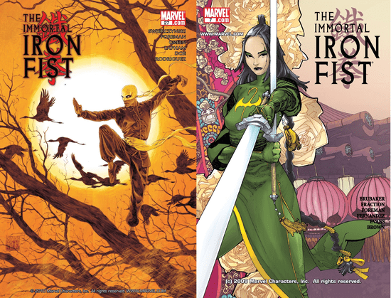 L’article d’aujourd’hui portera sur le run de Matt Fraction et Ed Brubaker sur la série IMMORTAL IRON FIST en 16 épisodes publiés entre 2007 et 2008. Je parlerai également rapidement du run suivant de Duane Swierczynski (qui gagne le record du nom le plus pénible à écrire, devant Straczynski) qui s’étend du numéro 17 à 27.