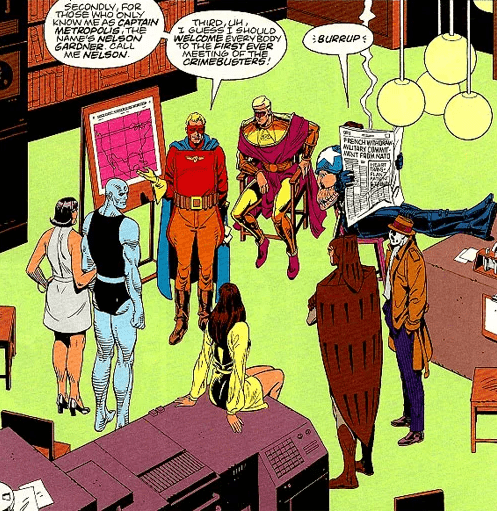 Il fut un temps où le Dr Manhattan faisait partie des Gardiens (the Watchmen), une équipe de super-héros américaine faisant régner la justice dans le pays. Finalement, la loi a estimé que ce phénomène n’était pas officiel et a fini par interdire les justiciers masqués.