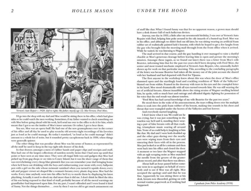 Puisque le récit se double d’une toile de fond philosophique sur le sens de la vie, il est entrecoupé d’une bande-dessinée dans la bande-dessinée (une histoire de pirates : Les Contes du Bateau Noir), effectuant une mise en abime sur la perception du réel, la fuite en avant et l’absurdité de la condition humaine. Une manière également de refaire l’histoire du comic book et de rappeler qu’avant que les super-héros n’envahissent le médium, il y avait d’autres genres à succès, qui pourraient donc encore durer si les super-héros n’existaient plus…