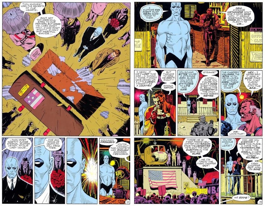 C’est au moment où débute le récit, alors que la situation internationale est au paroxysme de la guerre froide et que le président Nixon entame son énième mandat, que le Comédien, un ancien membre des Gardiens, est retrouvé mystérieusement assassiné dans son appartement.